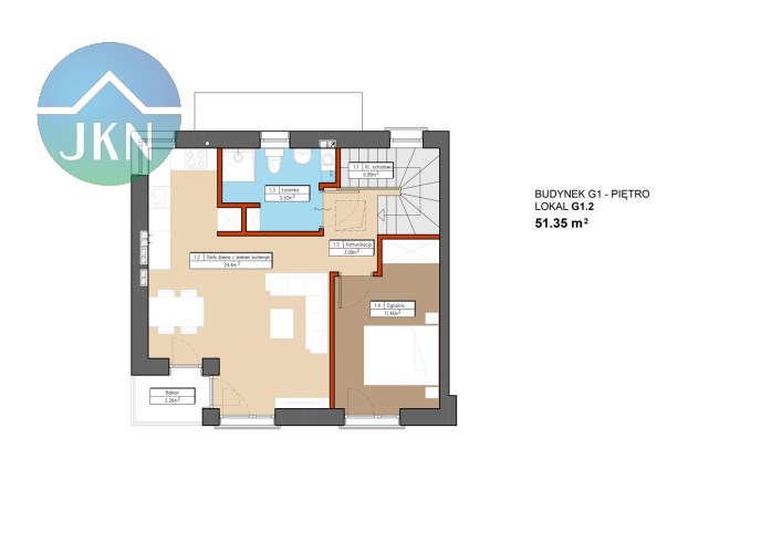 - Salon z kuchnią 24,4 mkw.