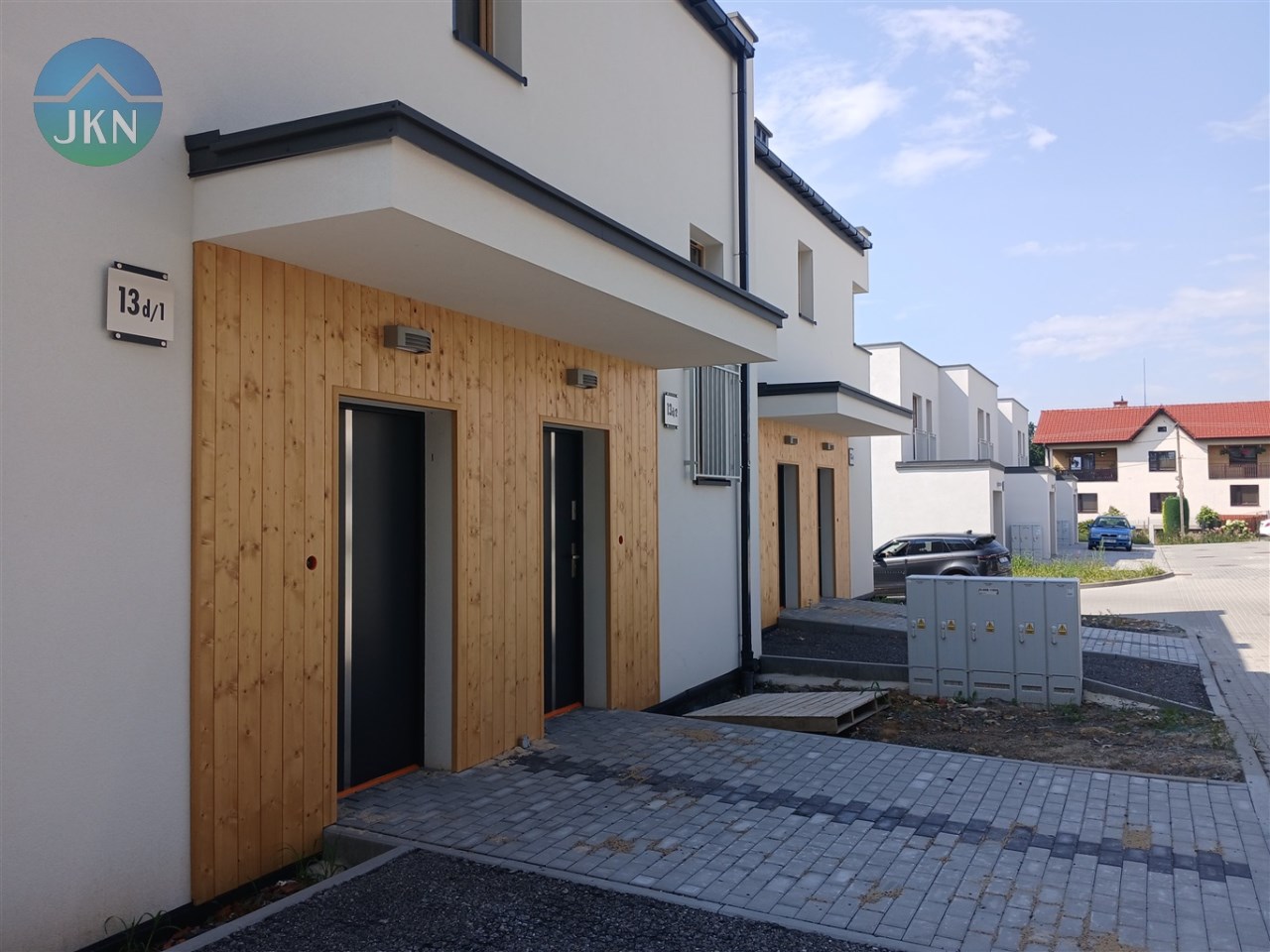 - Dojście do budynku, drogi wewnętrzne oraz parkingi wyłożone kostką brukową lub geokratą,