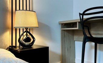 Mieszkanie w pełni umeblowane i wyposażone. Na ścianach gładzie gipsowe/malowane. Na podłogach płytki oraz panele. Oświetlenie zewnętrzne budynków nad wejściem. Stolarka okienna PCV - wystawa okien skierowana w kierunku zachodnim. Drzwi wejściowe zewnętrzne ocieplane (metalowe).
