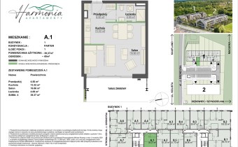 Oferowany lokal mieszkalny nr A.1 o pow. 39,37 mkw., z własnym ogródkiem o pow. ok. 40 mkw. oraz wystawą okien - strona zachodnia, zlokalizowany jest na parterze budynku nr 1