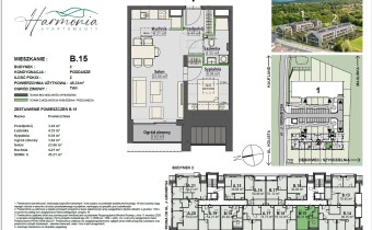 W ofercie są dostępne różne typy apartamentów, dostosowane do indywidualnych potrzeb i preferencji. Apartamenty Harmonia to 78 mieszkań (w dwóch budynkach) o powierzchni użytkowej od 39m2. Apartamenty na parterze mają dostęp do indywidualnych ogródków, natomiast na wyższych kondygnacjach posiadają balkony, loggie oraz ogrody zimowe.