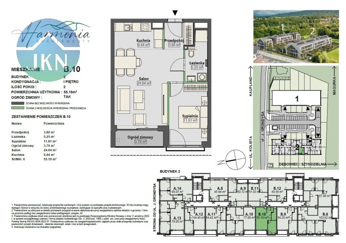 Oferowany lokal mieszkalny nr B.10 o pow. 55,19 mkw., z ogrodem zimowym oraz wystawą okien - strona zachodnia, zlokalizowany jest na 1 pietrze budynku nr 2