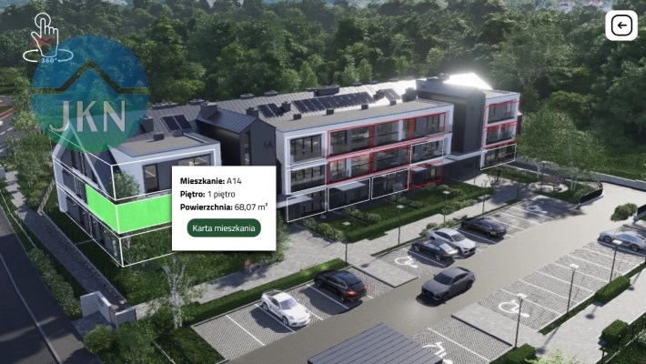 Oferowany lokal mieszkalny nr A.14 o pow. 68,07 mkw., oraz wystawą okien w kierunku północny - zachód, zlokalizowany jest na pierwszym piętrze budynku nr 1.