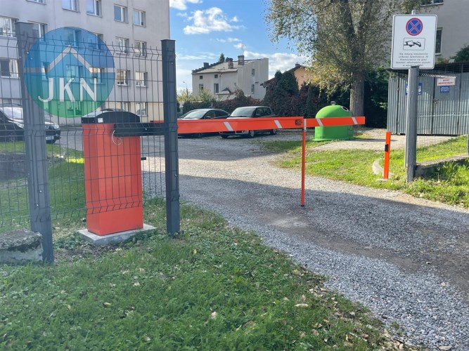 - teren ogrodzony, szlaban