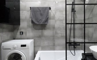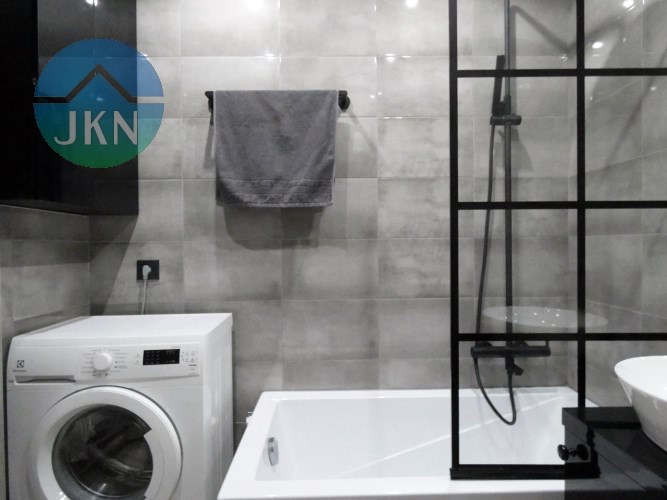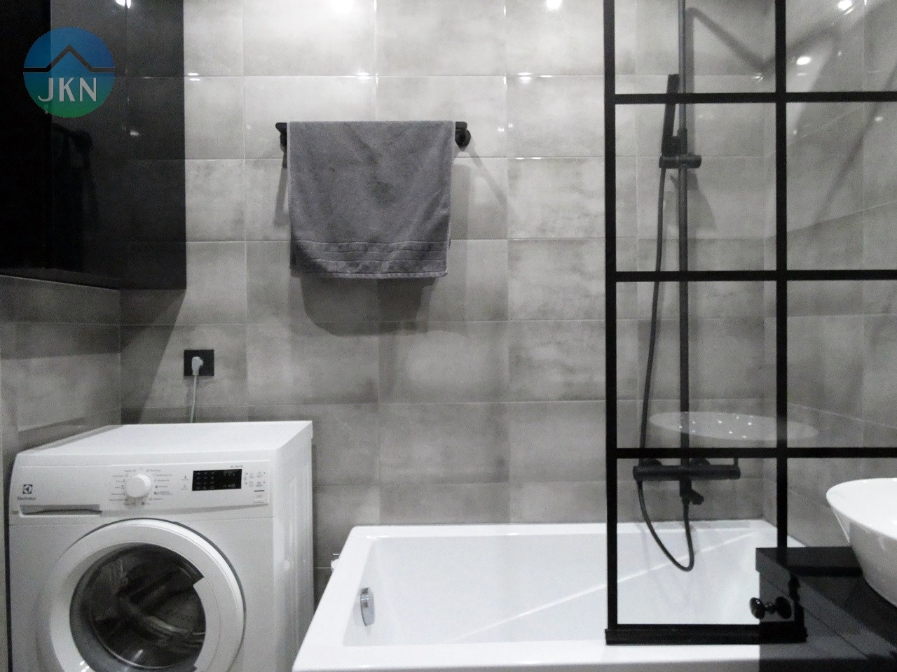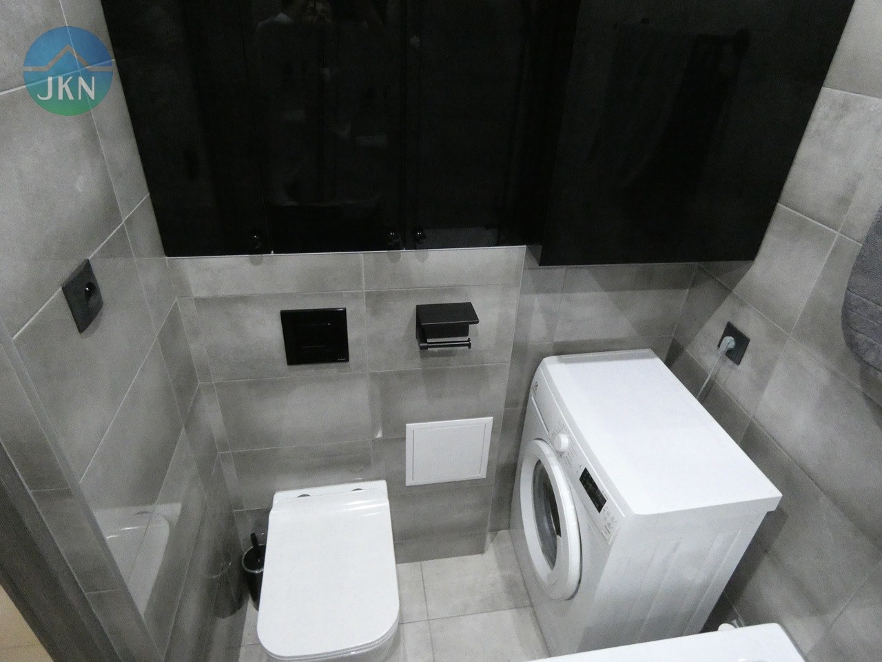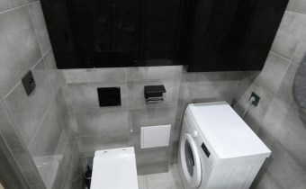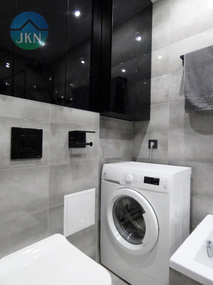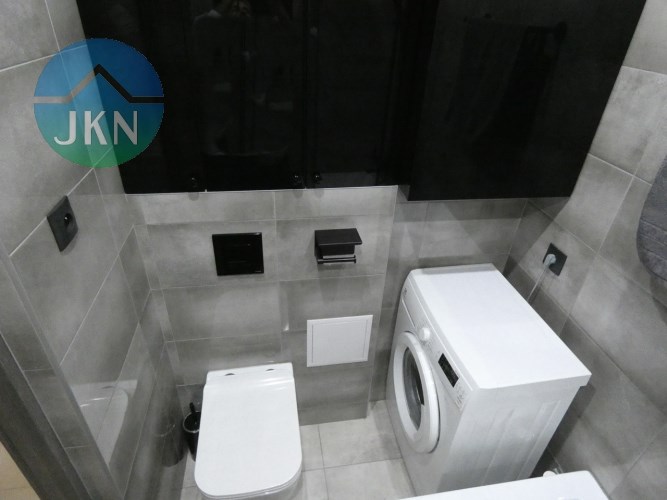 - łazienkę z toaletą, prysznicem umywalką i pralką