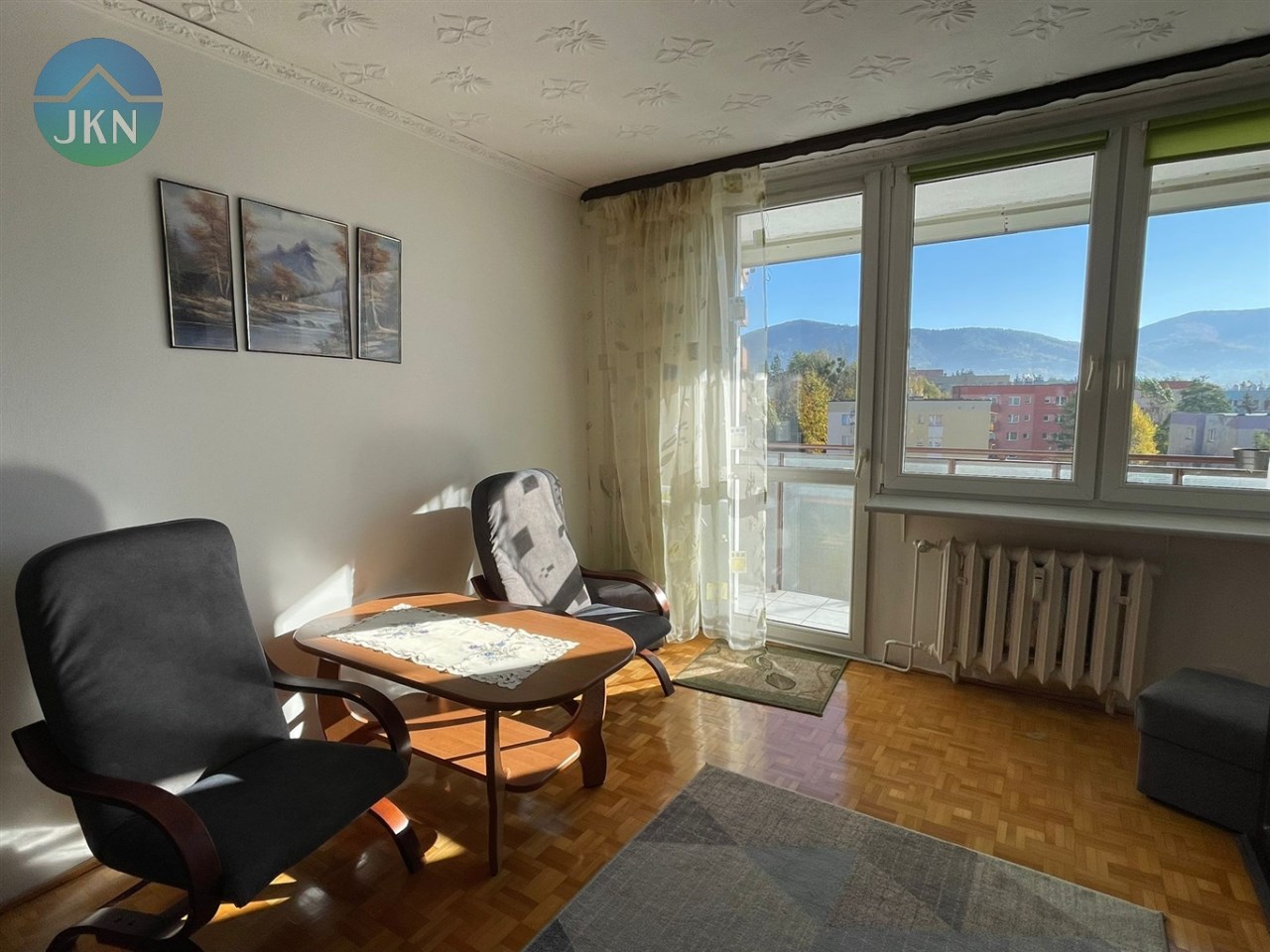 - salon z wyjściem na widokowy balkon, osobna kuchnia, sypialnia, łazienka z wanną i WC, przedpokój