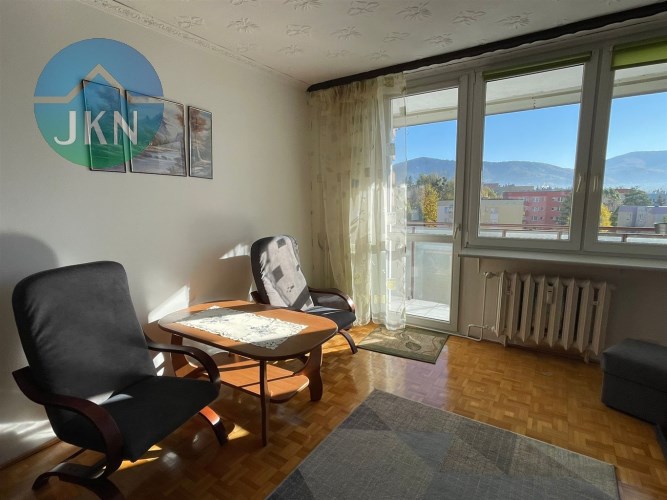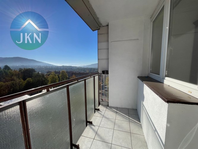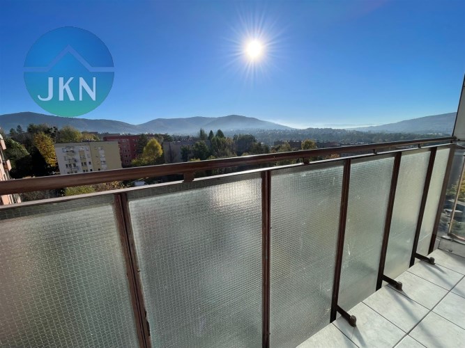 Do wynajęcia jasne i funkcjonalne mieszkanie o powierzchni 42,93 m² zlokalizowane na 8 piętrze w 10-piętrowym bloku z windą na osiedlu Złote Łany w Bielsku-Białej. Mieszkanie położone jest od strony południowo-wschodniej, co zapewnia doskonałe nasłonecznienie oraz piękny, nieprzesłonięty widok na góry. Rozkład pomieszczeń obejmuje przestronny salon z wyjściem na balkon, osobną kuchnię w zabudowie wyposażoną w niezbędny sprzęt AGD (lodówka, płyta gazowa, piekarnik elektryczny, okap; istnieje również miejsce na zmywarkę), nieumeblowaną sypialnię, łazienkę z wanną, pralką i WC oraz przedpokój. Do mieszkania przynależy piwnica. Pod blokiem duży parking ogólnodostępny.
