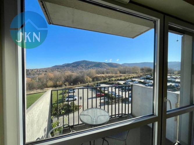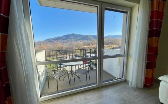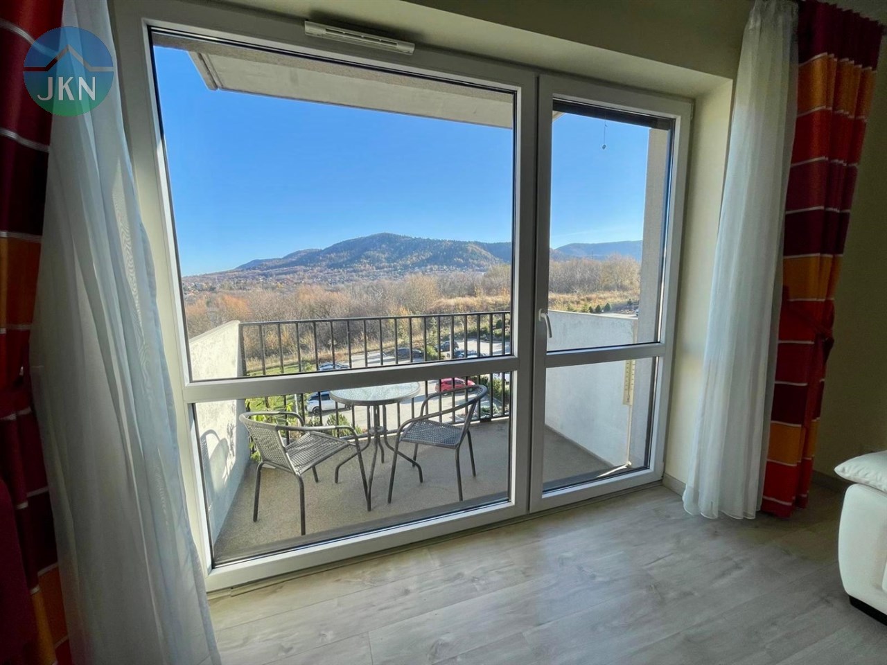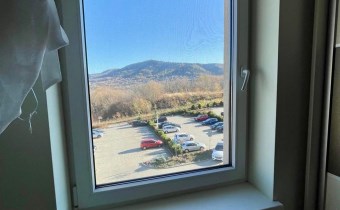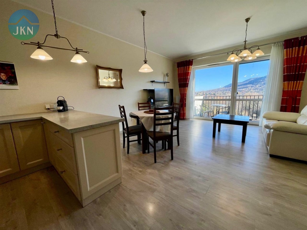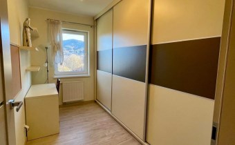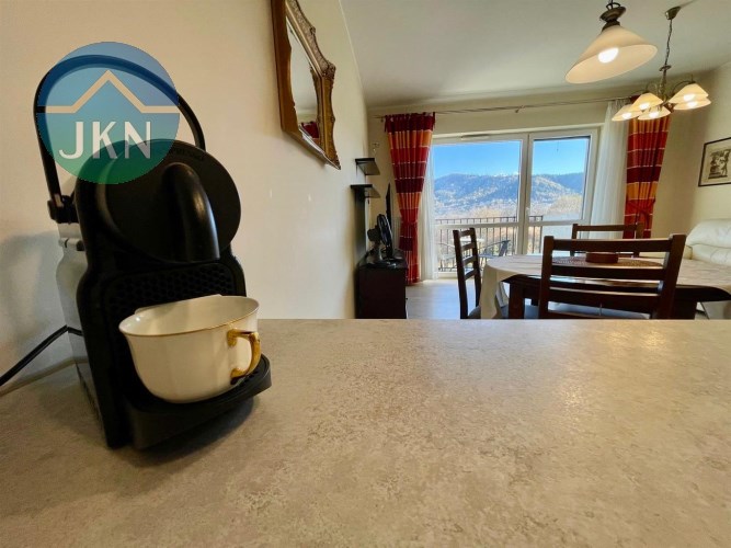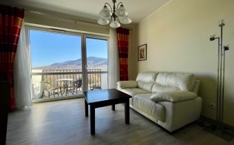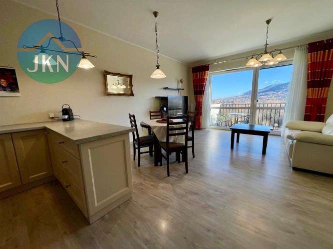 3-pokojowy apartament z widokiem na góry usytuowany na 2 piętrze w 4 piętrowym apartamentowcu z windą, składający się z pokoju dziennego z aneksem kuchennym i wyjściem na balkon, spiżarki, sypialni, małego pokoju z dużą szafą oraz łazienki. Do mieszkania przynależy miejsce postojowe zewnętrzne. Apartament w całości umeblowany i wyposażony - Właściciel może dodatkowo dokupić kanapę do salonu.