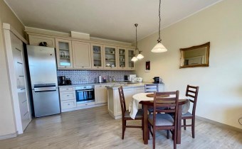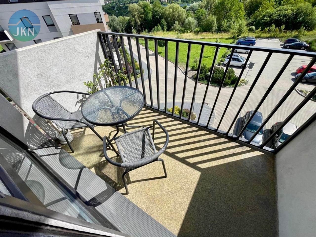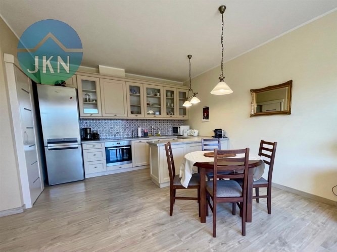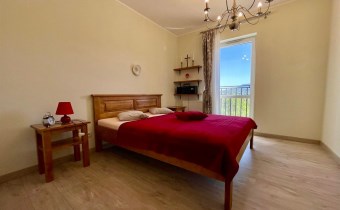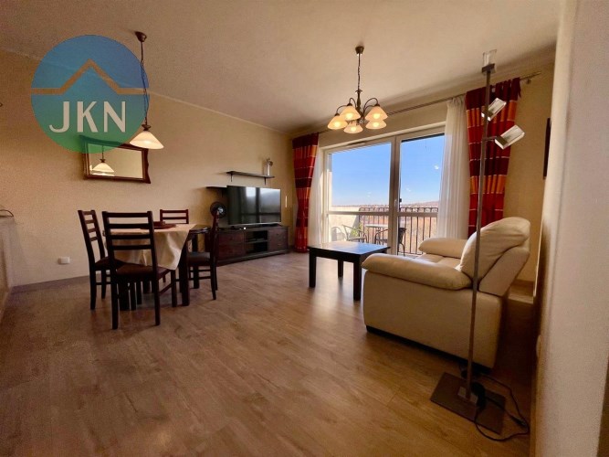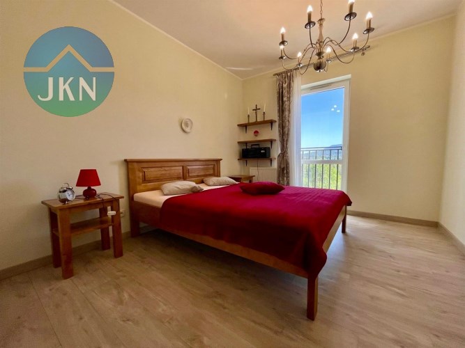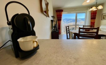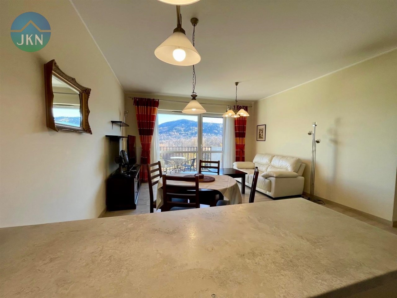 3-pokojowy apartament z widokiem na góry usytuowany na 2 piętrze w 4 piętrowym apartamentowcu z windą, składający się z pokoju dziennego z aneksem kuchennym i wyjściem na balkon, spiżarki, sypialni, małego pokoju z dużą szafą oraz łazienki. Do mieszkania przynależy miejsce postojowe zewnętrzne. Apartament w całości umeblowany i wyposażony - Właściciel może dodatkowo dokupić kanapę do salonu.