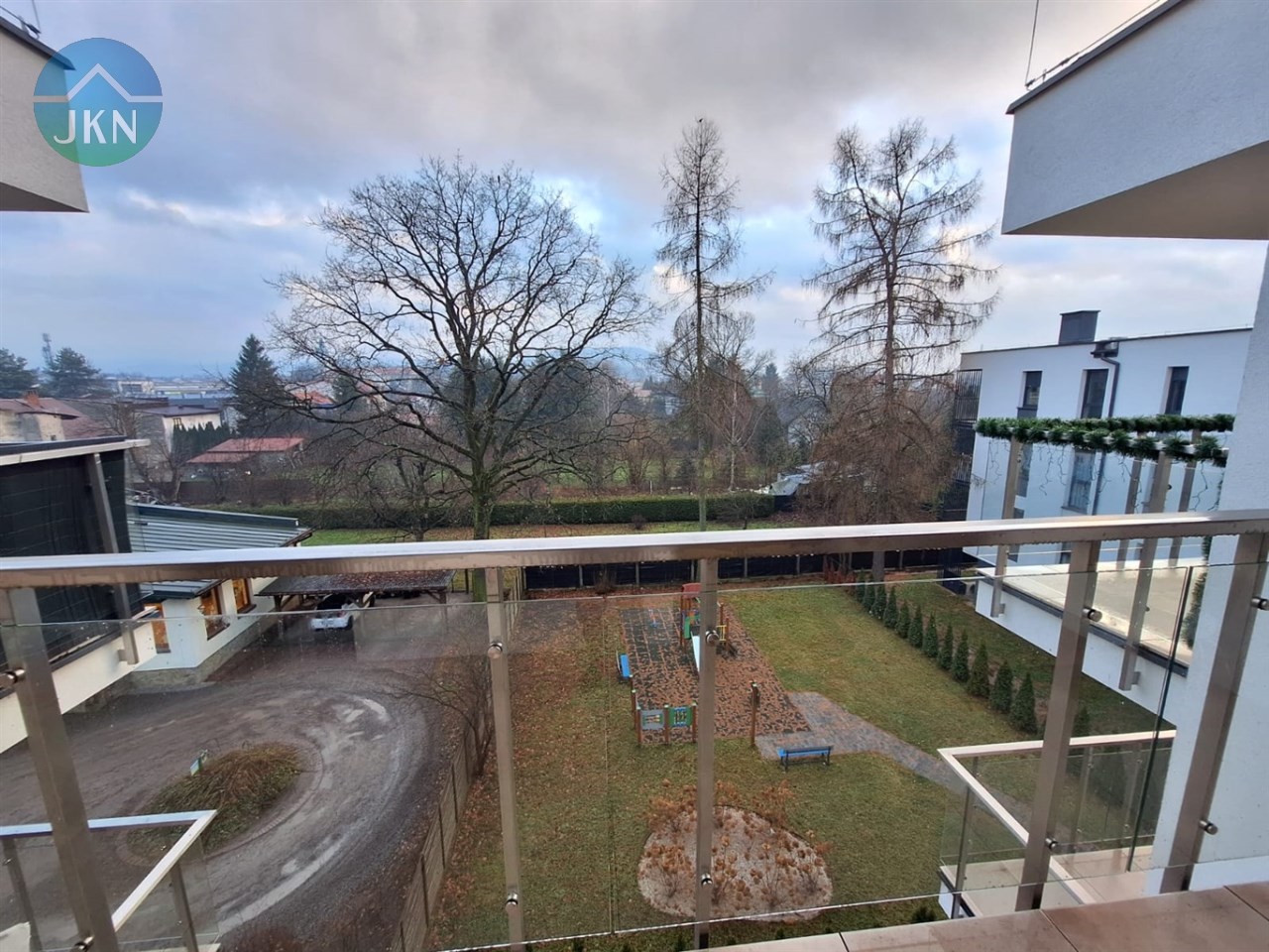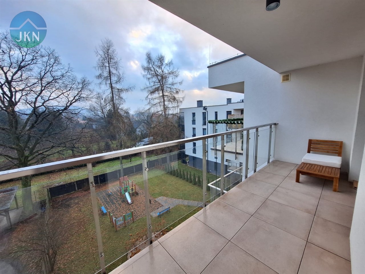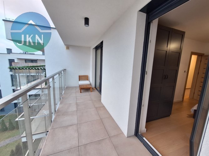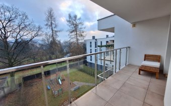 Ogromnym atutem mieszkania jest jego położenie na najwyższym pietrze oraz możliwość korzystania z własnego tarasu/balkonu - całkiem sporego, bo jest na całej szerokości mieszkania i możemy na niego wyjść zarówno z salonu jak i z sypialni.