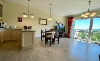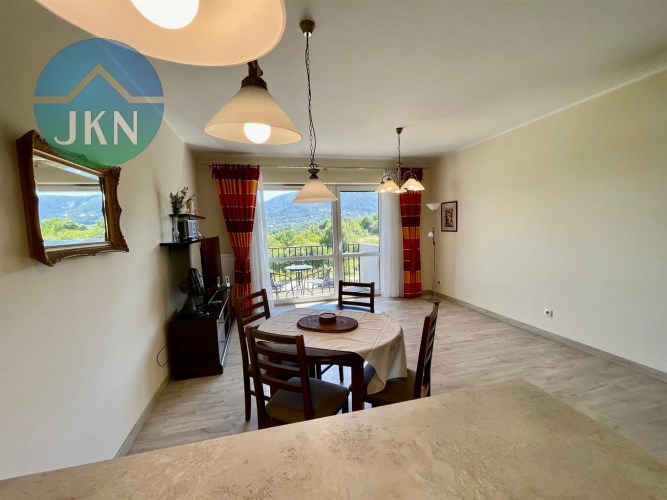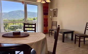 3-pokojowy apartament z widokiem na góry usytuowany na 2 piętrze w 4 piętrowym apartamentowcu z windą, składający się z pokoju dziennego z aneksem kuchennym i wyjściem na balkon, spiżarki, sypialni, małego pokoju z dużą szafą oraz łazienki. Do mieszkania przynależy miejsce postojowe zewnętrzne. Apartament w całości umeblowany i wyposażony - Właściciel może dodatkowo dokupić kanapę do salonu.