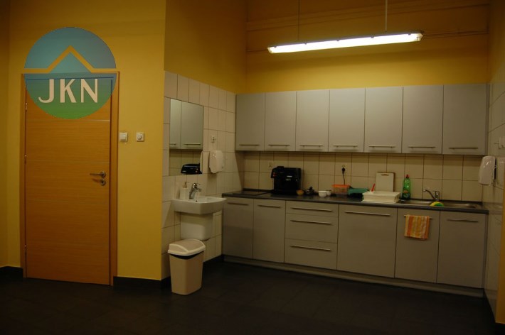 - wydzielone biura i pomieszczenia socjalne są w wysokim standardzie wykończenia z posadzkami z płytek gres, paneli podłogowych oraz glazurą na ścianach