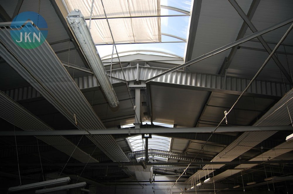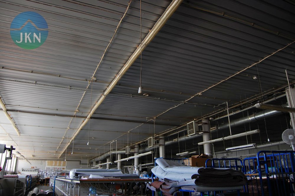 - dach hali produkcyjnej pokryty blachą trapezową na płatwiach drewnianych mocowanych do wiązarów