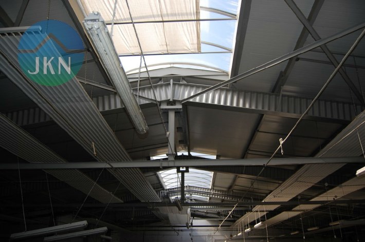 - dach hali pokryty płytami obornickimi z rdzeniem styropianowym