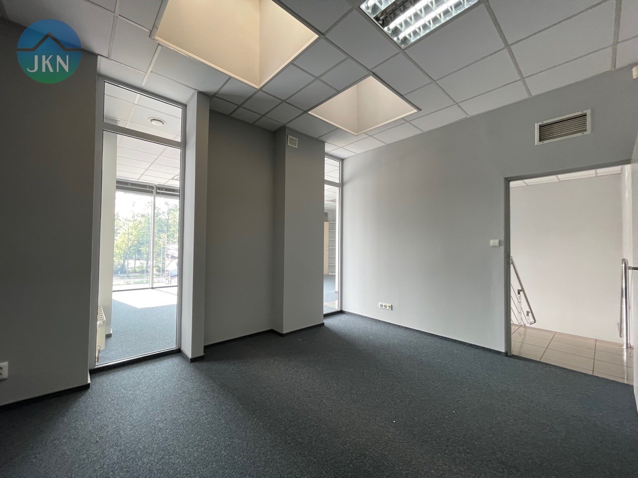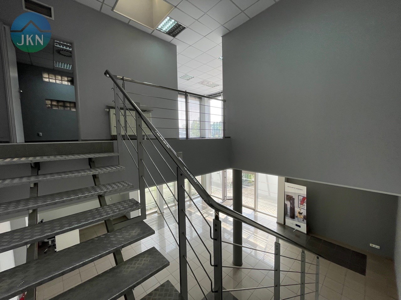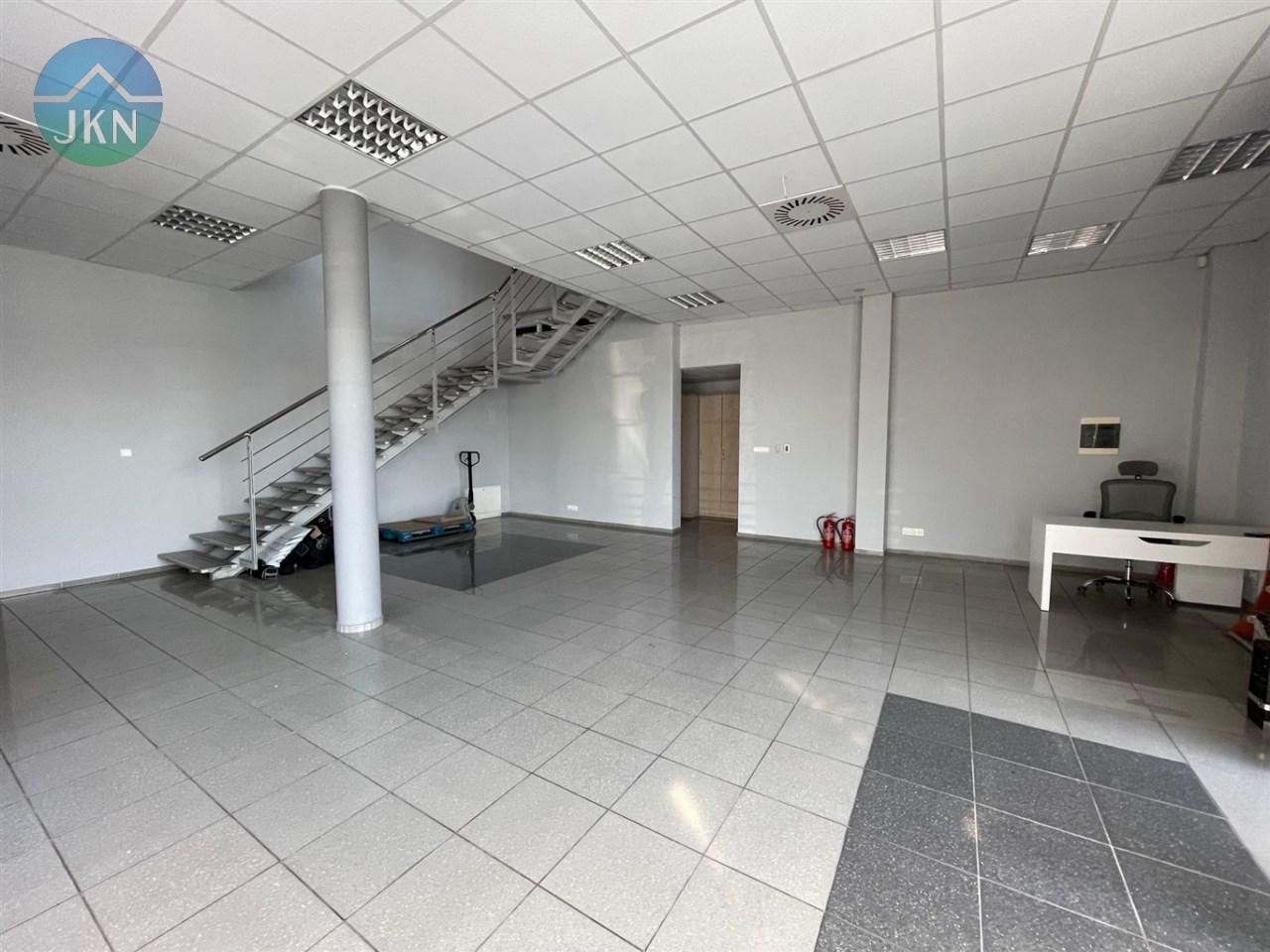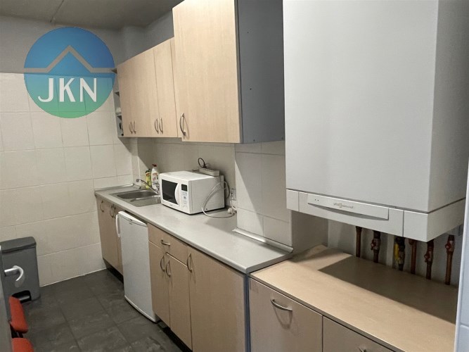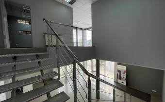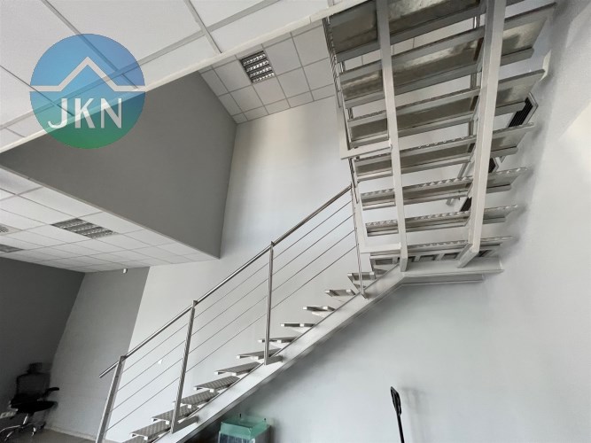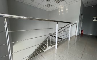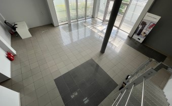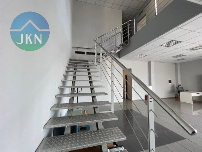 - PIĘTRO (powierzchnia 76m2): pomieszczenie biurowe (38m2), sala konferencyjna (20m2), kuchnia (6,m2), korytarz (8m2), łazienka z WC (3m2)