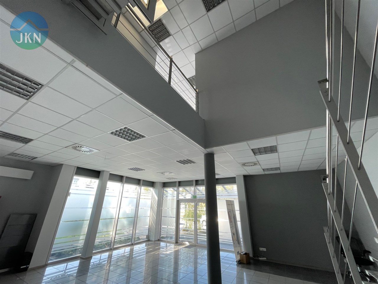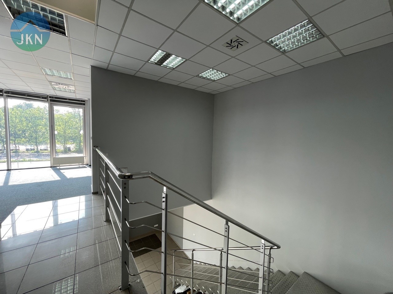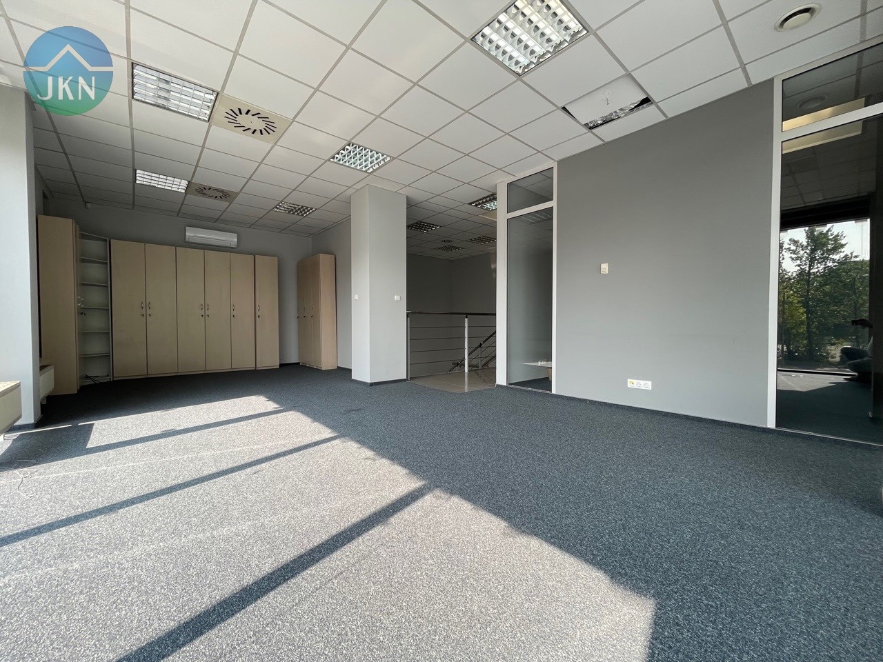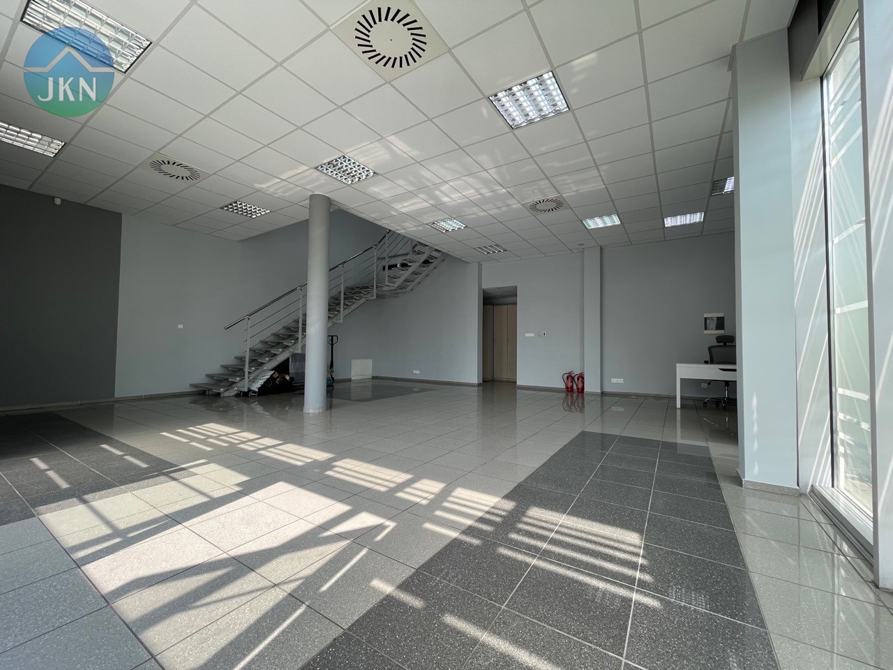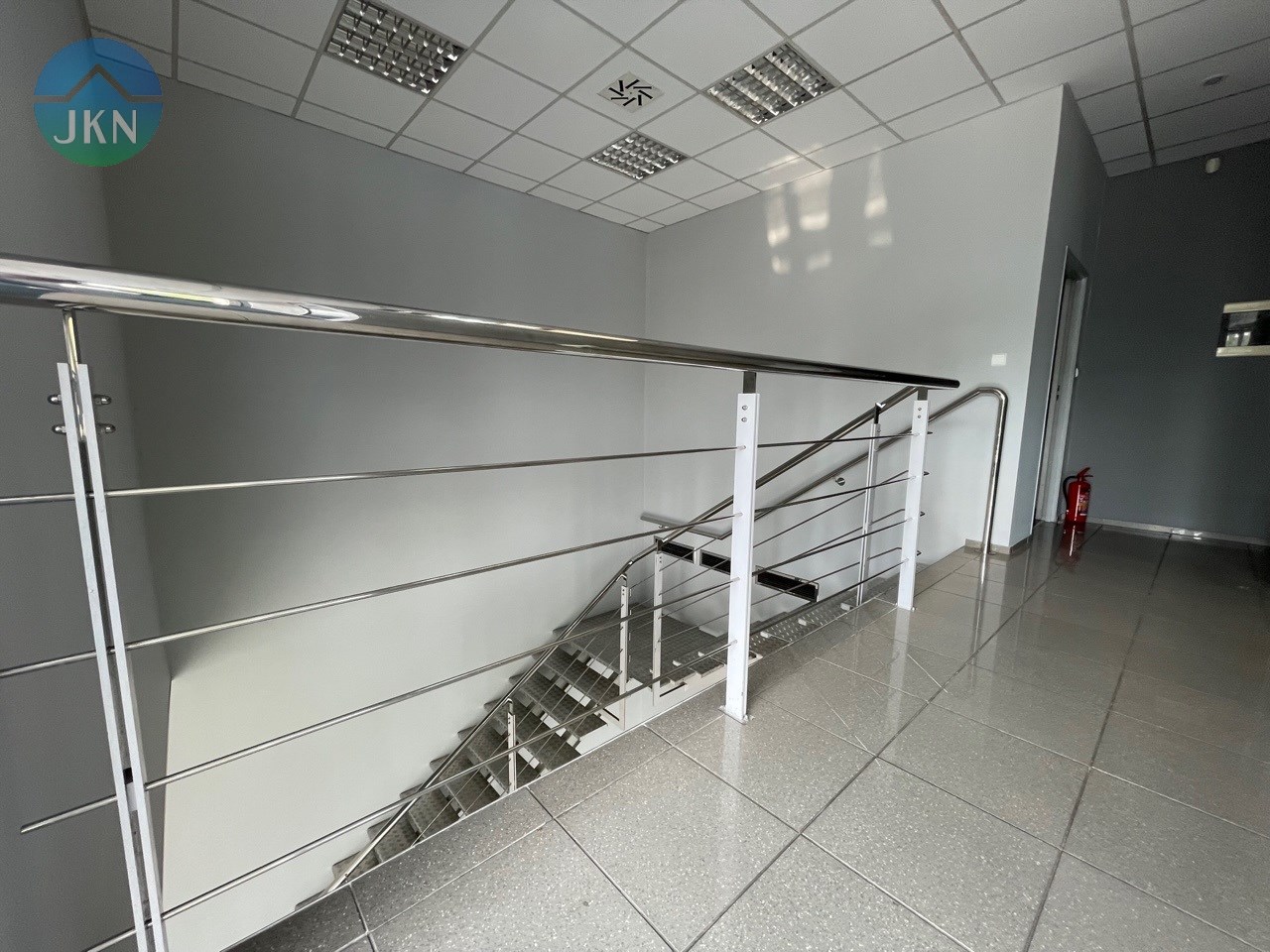 - PIĘTRO (powierzchnia 76m2): pomieszczenie biurowe (38m2), sala konferencyjna (20m2), kuchnia (6,m2), korytarz (8m2), łazienka z WC (3m2)