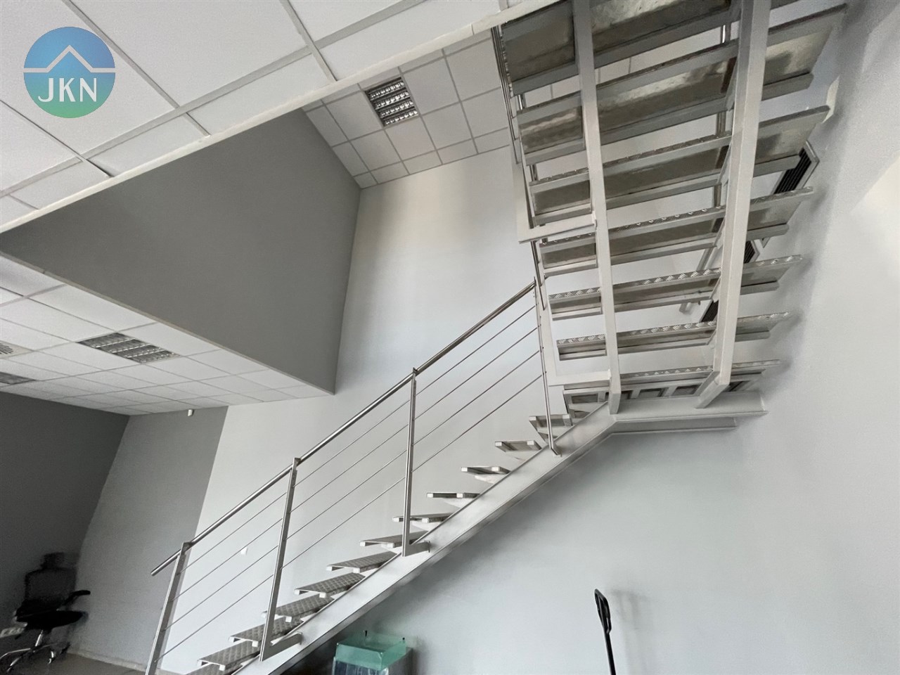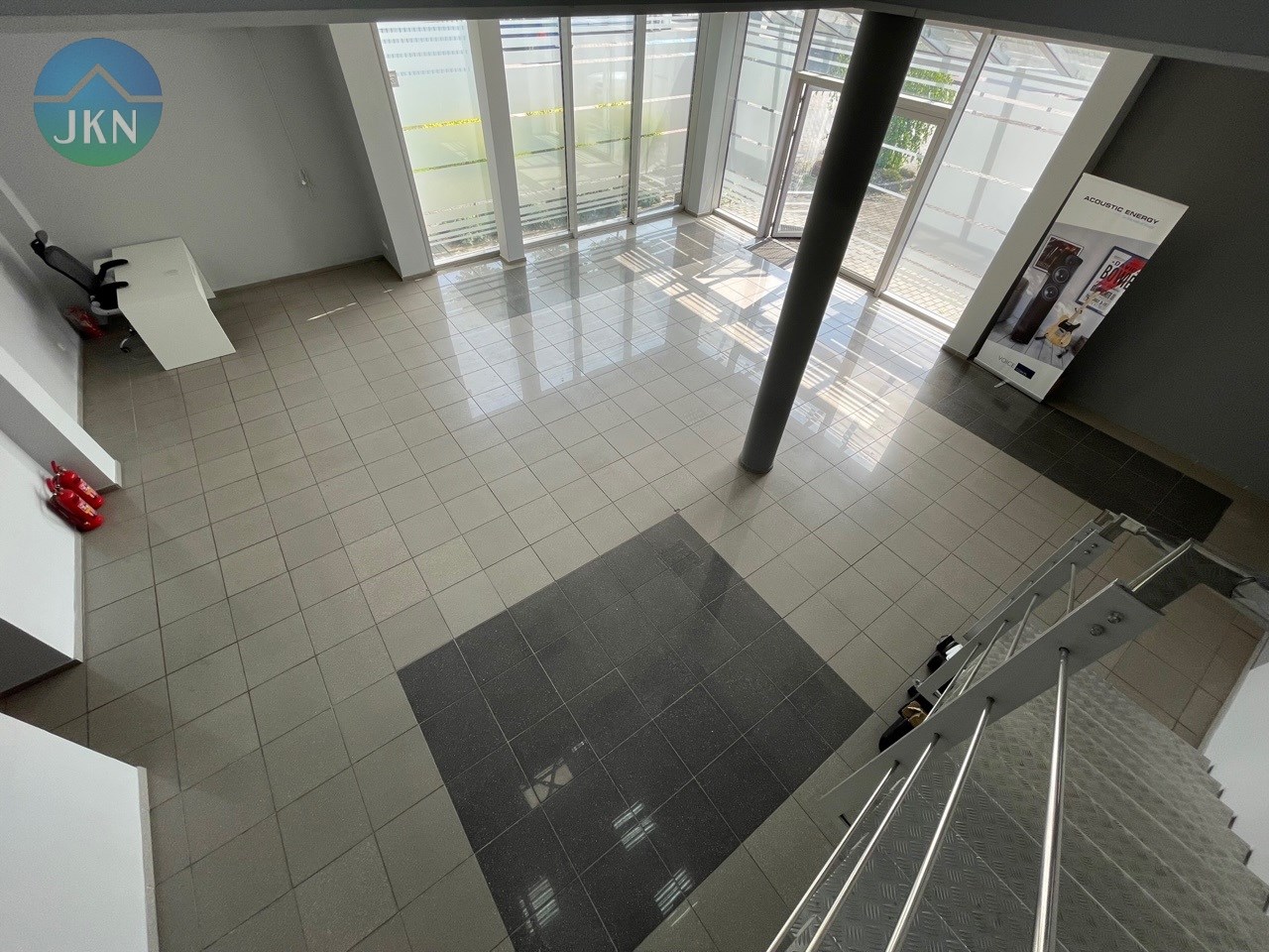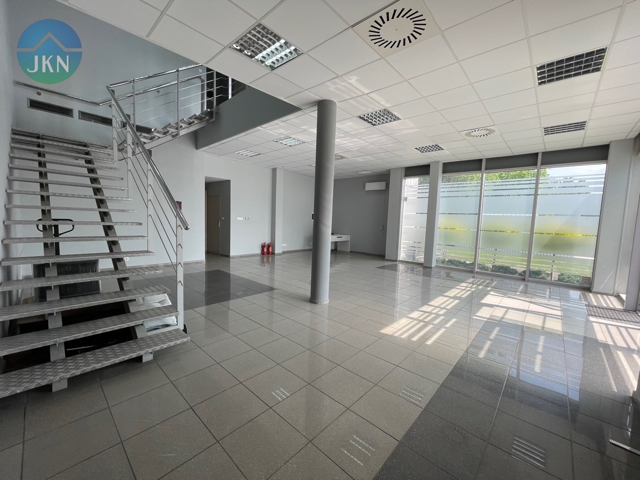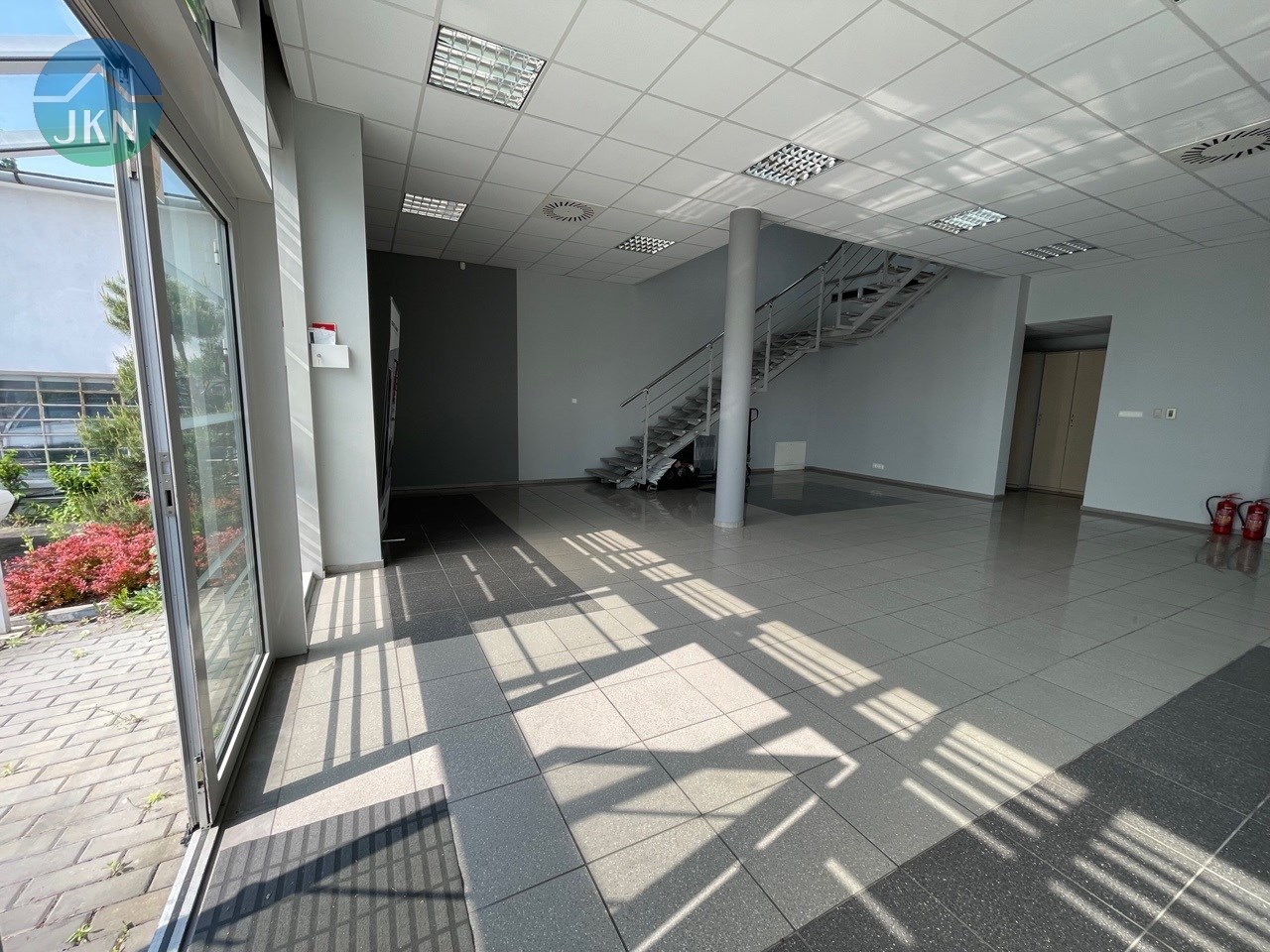 - PIĘTRO (powierzchnia 76m2): pomieszczenie biurowe (38m2), sala konferencyjna (20m2), kuchnia (6,m2), korytarz (8m2), łazienka z WC (3m2)